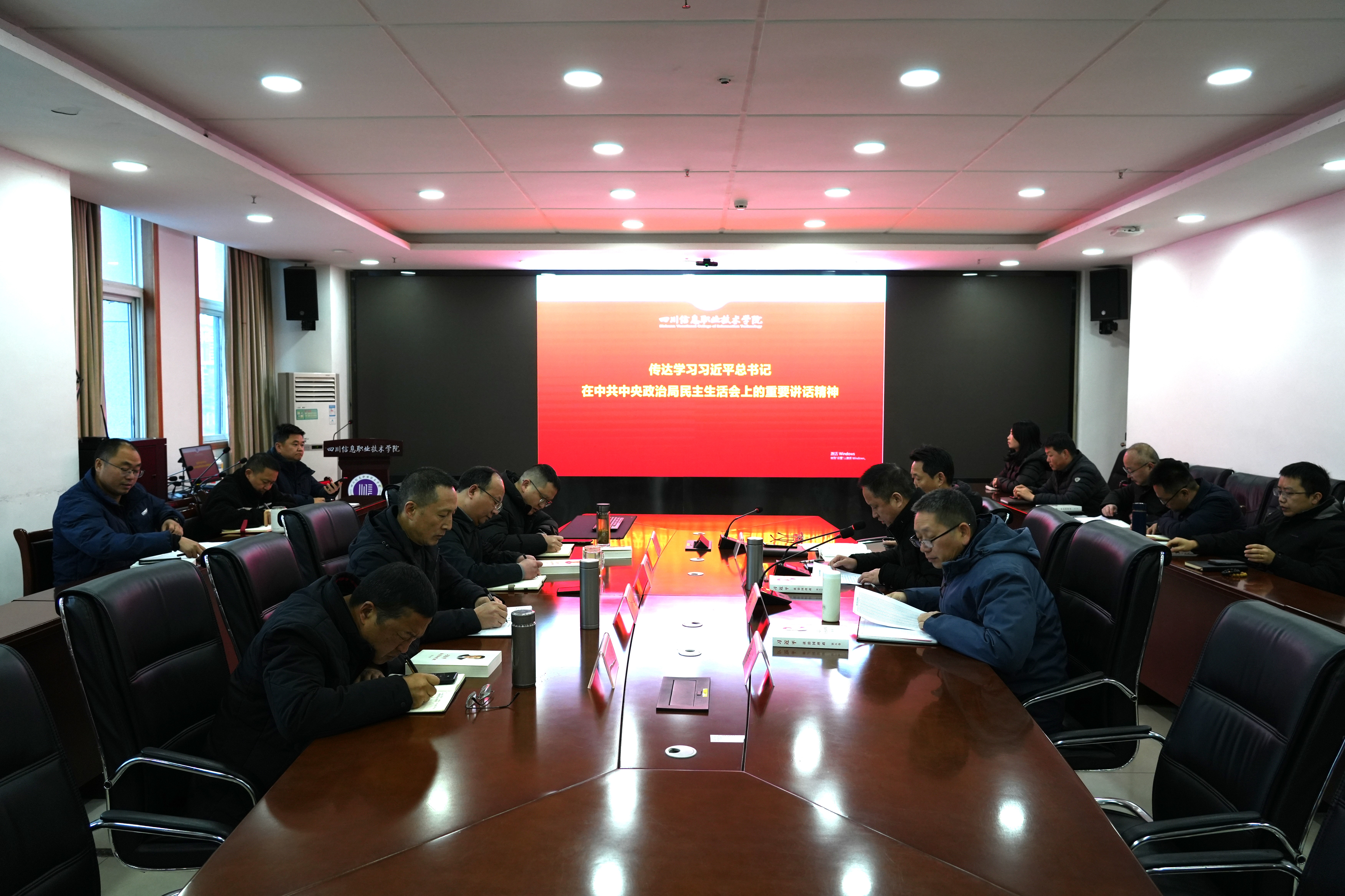 1月19日上午,学院党委中心组在综合楼0903会议室召开学习会,专题传达学习了习近平总书记在中共中央政治局民主生活会上的重要讲话精神和在中共中央政治局会议研究部署党风廉政建设和反腐败工作时的重要讲话精神。党委班子成员、中层领导干部参加学习会,会议由党委书记郑学奇主持。
