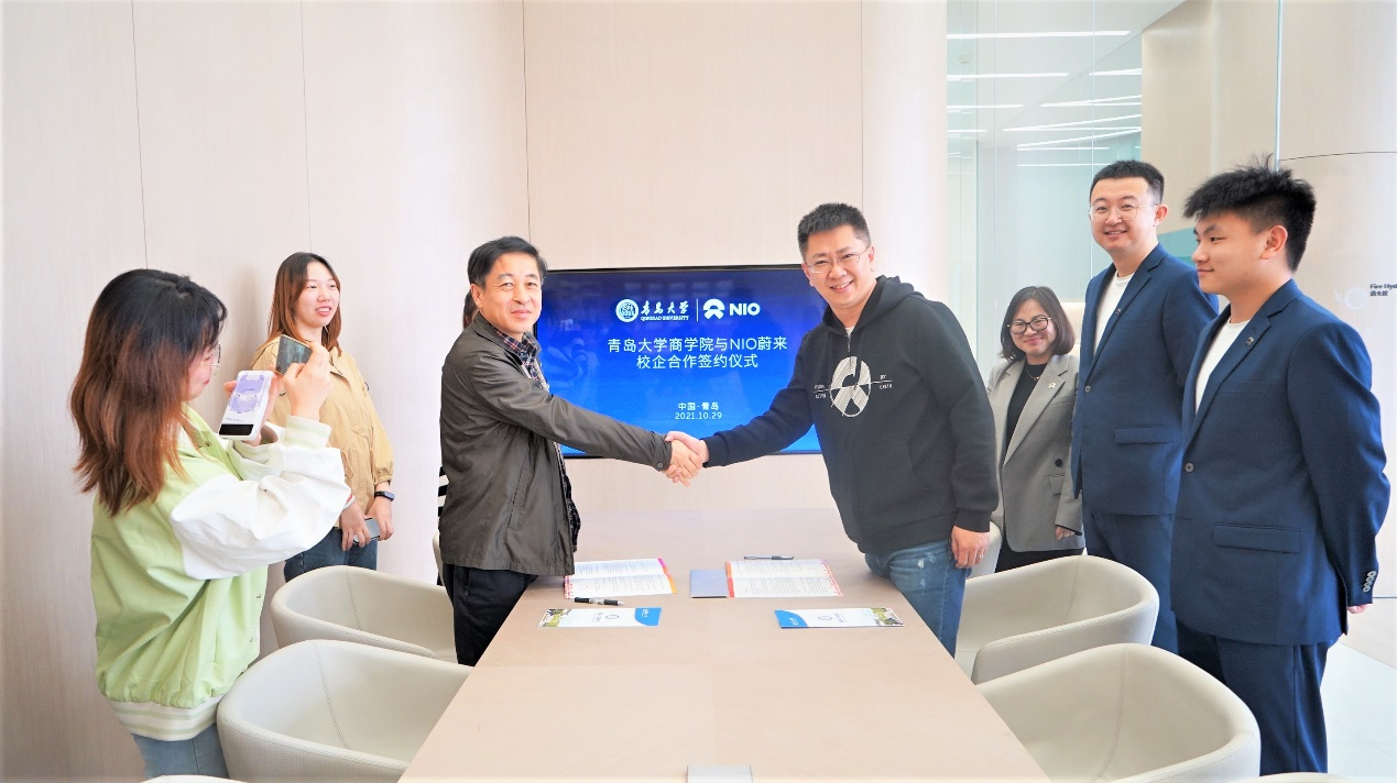 NIO蔚来代表青岛区域总经理李轶石、必赢76net线路官网党委书记王功勇分别致辞。