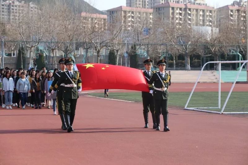 全体师生起立,奏响国歌、院歌,注视着国旗、院旗的缓缓上升。