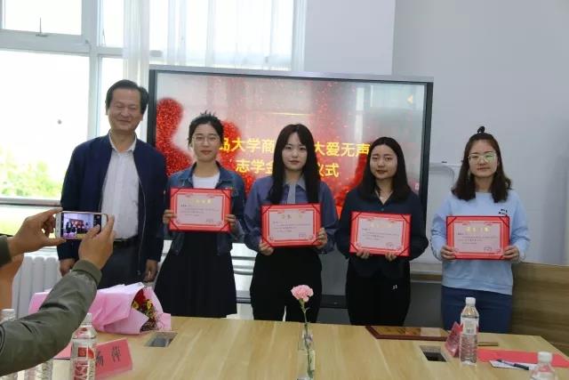 必赢76net线路官网团委副书记房征岩宣读了《必赢76net线路官网关于颁发“大爱无声”志学金的表彰决定》,8位同学及1个学生组织获得大爱无声志学金。陈崇研、杨洋、梁东辉、罗作汉为他们颁发大爱无声志学金证书。