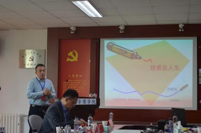 海立美达CFO、福沃汇创合伙人总经理邰桂礼学长代表从事财务的校友做了精彩发言,学长介绍了自身企业的转型之路,并分享了自己的投资心得、职业心得和公司概况。