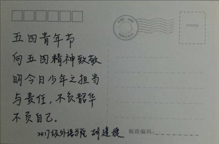 小小的明信片传递出大学生青年们大大的希望与期待。本次活动共征集同学们亲笔写下的明信片300多张,每一张都记录着同学们对国家以及未来的坚定与担当。