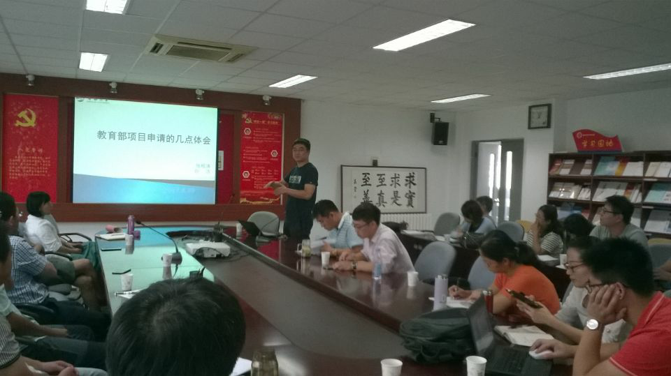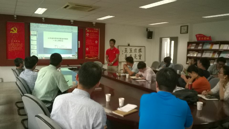 肖建红教授为青年教师们评析了国家自然科学基金与社科基金申报要求的不同以及申请书撰写的注意事项;朱礼华博士从学术圈子、学术团队组建以及个人的认知与行动方面分享了自己的一些个人感触;姚海棠博士就如何做好前期的研究趋势分析、如何搜集相关的文献以及申报书中常见的不足之处做了详细的阐述;张桂涛副教授和孙浩副教授评析了教育部人文社科基金项目的申报要求,就如何选题、如何合理分配经费预算做了详细报告;牟宗玉副教授就山东省自然科学基金做了详细解读,强调研究方向一定要紧贴山东省发改委发布的《山东省“十三五”科技创新规划》,吸纳之前的自然基金的专家评审意见,对比分析了如何不断改进项目标书的写作细节。