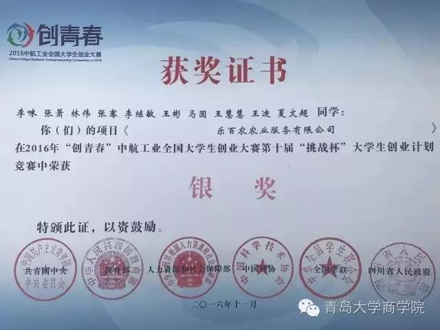 我院学子获2016年“创青春”全国大学生创业大赛银奖