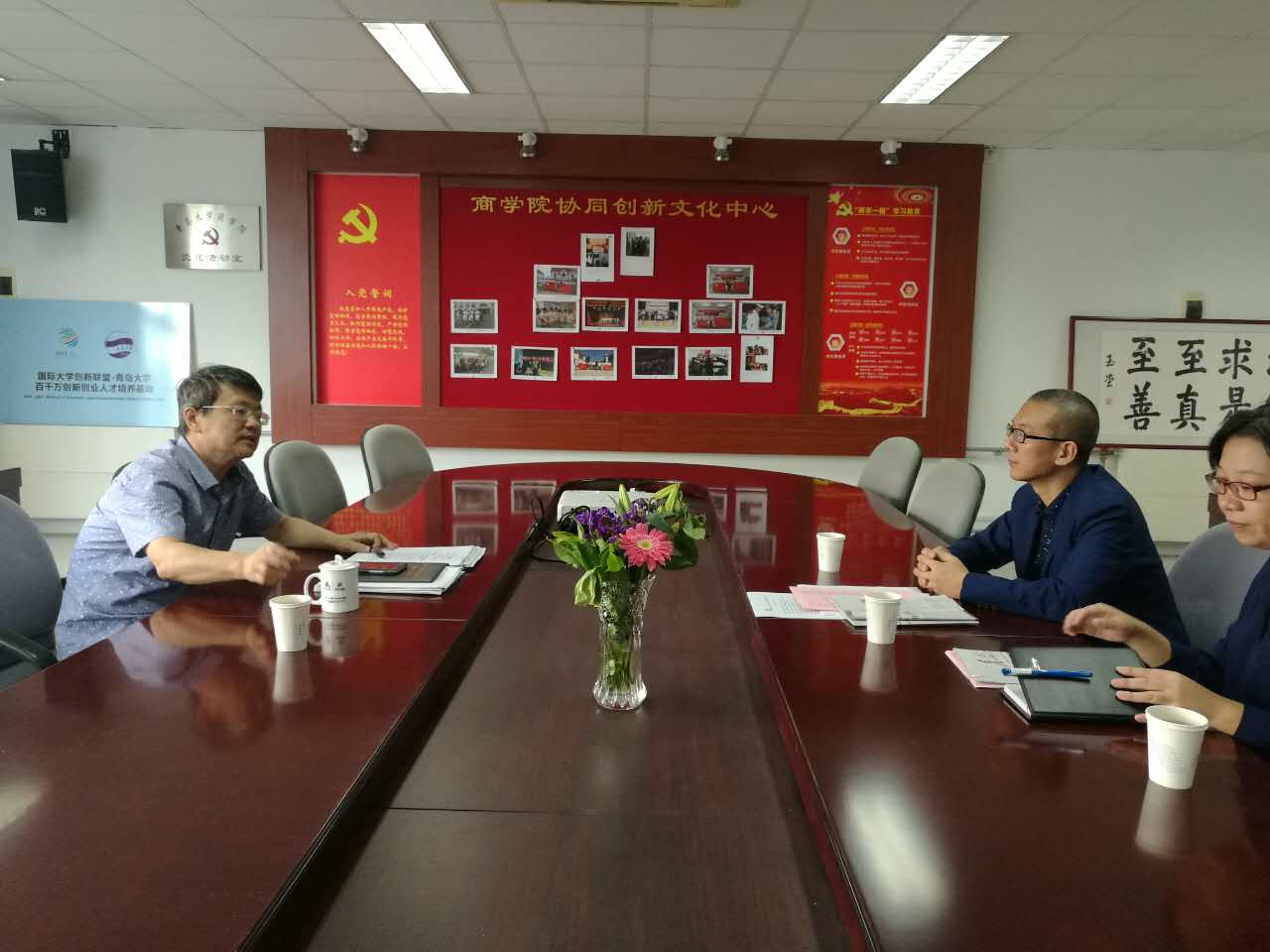 10月14日下午,中科招商集团山东区总经理毕群一行到我院考察。双方在东校区办公楼310会议室举行共建合作座谈会。我院党委书记管永建,党委副书记陈崇研,学工办主任李鹏出席会议。