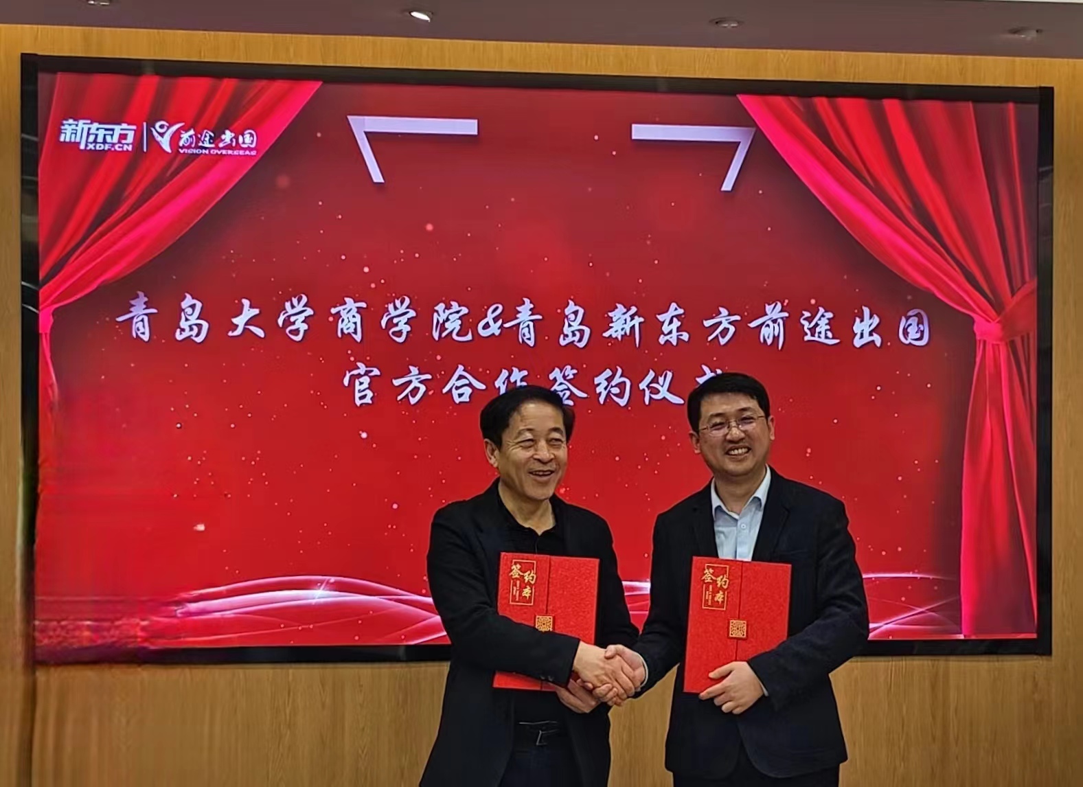 2024年3月23日上午,必赢76net线路官网与青岛新东方前途出国咨询有限公司签署合作共建协议暨教学实践基地挂牌仪式活动在新东方前途出国会议室举行。青岛新东方前途出国总经理孙桂岩、总助刘和平、必赢76net线路官网党委书记王功勇、党委副书记尼梅颉、学工办主任李鹏等出席挂牌仪式。