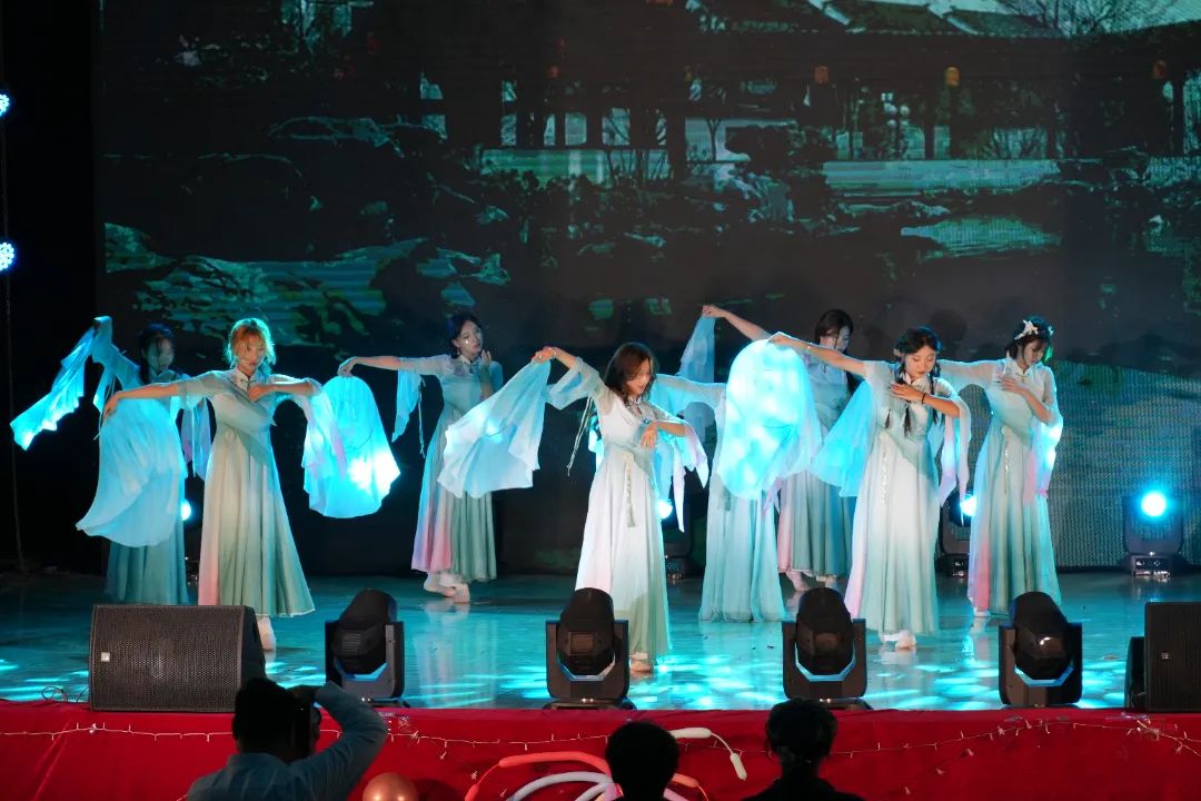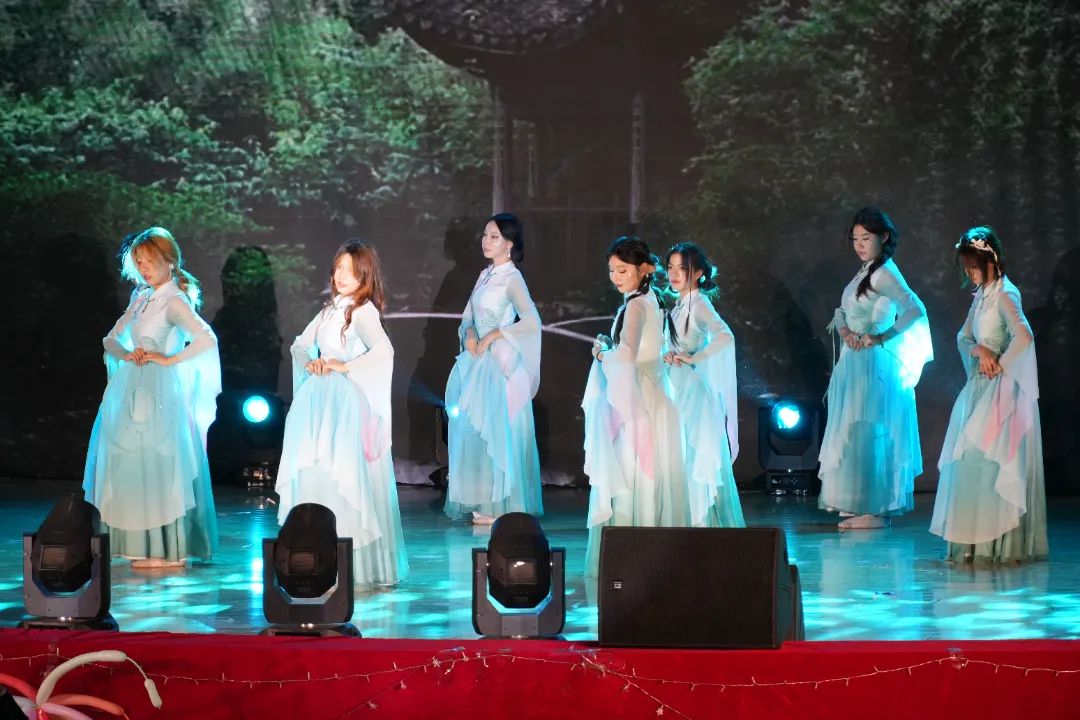 舞台灯光逐渐亮起,舞者们身着古装缓缓步入。充满国风特色的乐曲响起,她们衣衫随风轻扬,如同从江南烟雨中走来。她们优美的舞姿充分展现出民族舞蹈的魅力,现场观众赞叹不已。