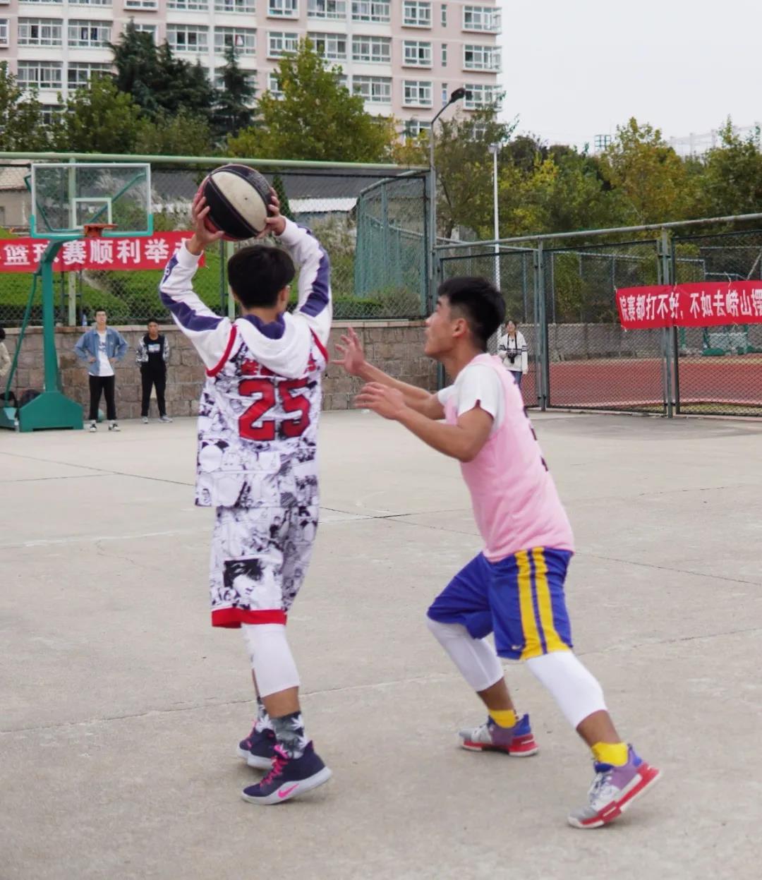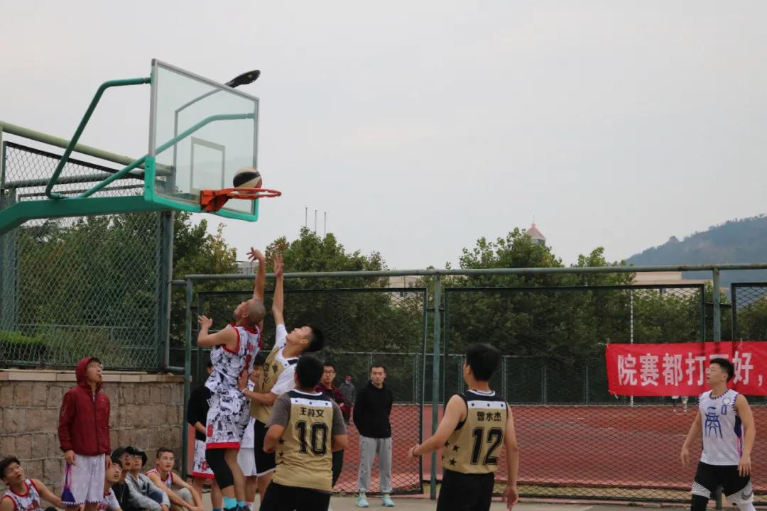 十月十日,周六,首轮进行的是来自管科与会计的比赛,伴随着阵阵喝彩声,比赛正式开始了。两队队员都激情澎湃,激情高涨,现场氛围一下被拉上了高潮,双方队员都不甘示弱,展示了各自的实力,在篮球场上留下了一个个拼搏的身影。
