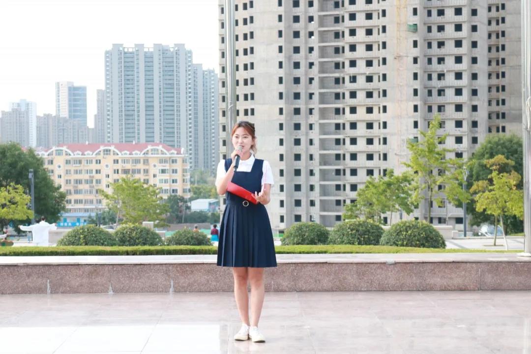 在一片庄严肃穆的气氛中,国旗班成员迈着铿锵的步伐,护送着国旗走向升旗台。在雄壮有力的国歌声响起的那一瞬间,全体师生的眼睛注视着五星红旗冉冉升起,心灵伴随着祖国母亲一起搏动,民族自尊自豪的热血在每一个人的血管中汹涌澎湃。晨光下的那抹鲜红,代表着无数革命先辈为民族抛头颅洒热血的光荣历史,昭示着中国71年来披荆斩棘稳健前行的风雨征程,也照耀着中华儿女自强不息奋勇前行的民族精神!