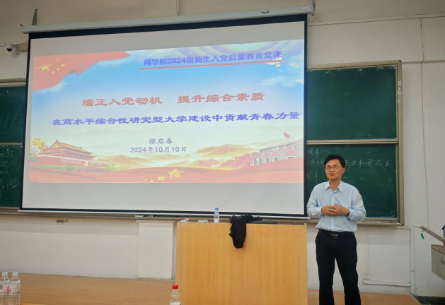 2024年10月10日下午, 第一场新生入党启蒙教育大会在金家岭校区西院1教111举行,必赢76net线路官网组织员张启春老师主讲,2024级会计学、管理科学与工程和供应链三个专业共211名新生聆听了此次讲座。