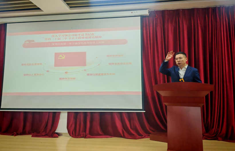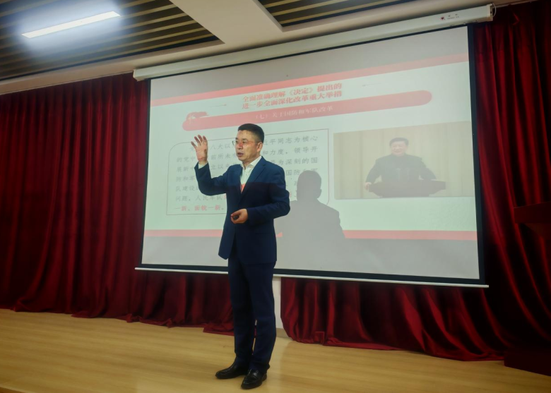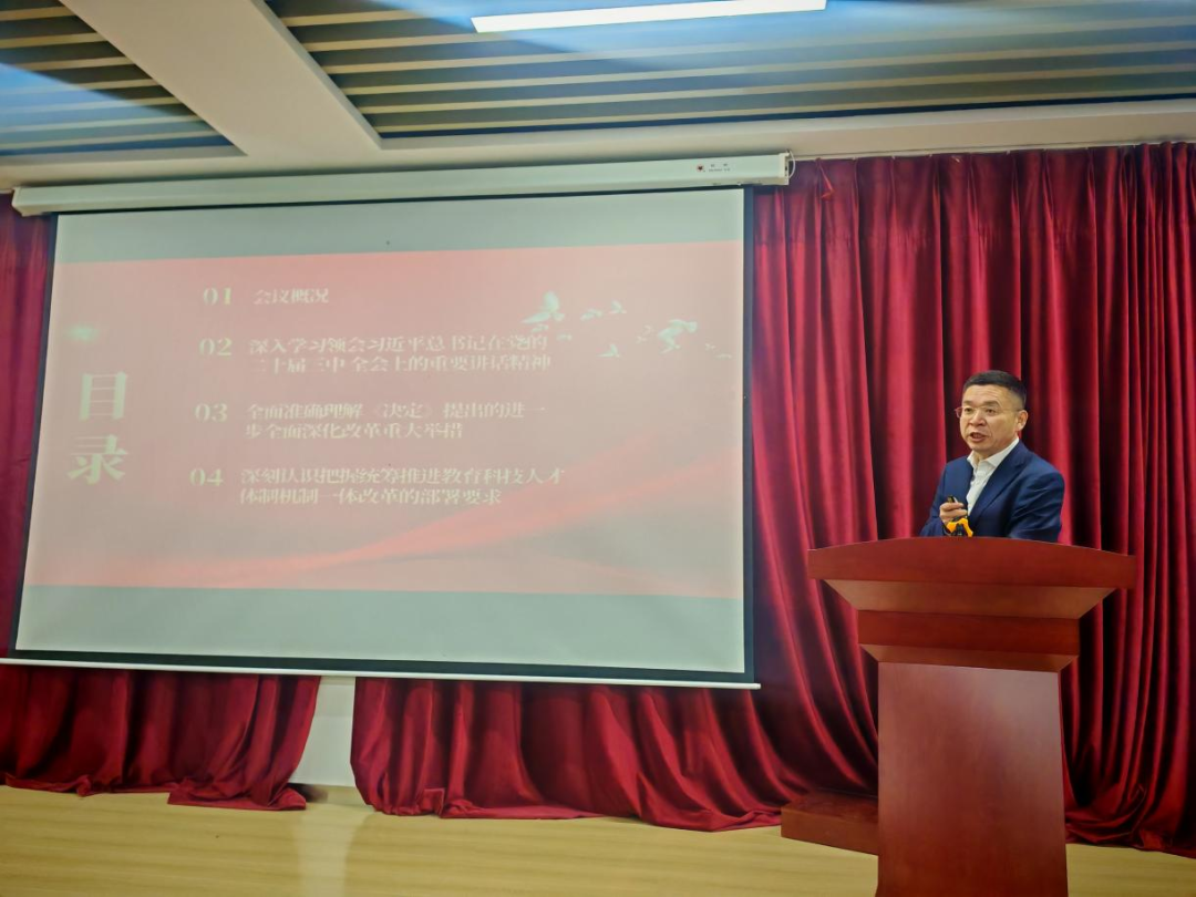 党课伊始,王庆金指出党的二十届三中全会是在以中国式现代化全面推进强国建设、民族复兴伟业的关键时期召开的一次具有里程碑意义的重要会议,每一位师生都应该深入学习,躬行实践。王庆金从党的二十届三中全会会议概况、深入学习领会习近平总书记在党的二十届三中全会上的重要讲话精神、全面准确理解《决定》提出的进一步全面深化改革重大举措和深刻认识把握统筹推进教育科技人才体制机制一体改革的部署要求四个方面进行了深入解读。
