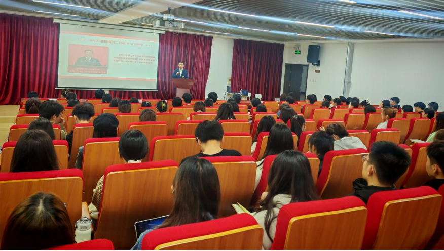 为深入学习贯彻党的二十届三中全会精神,引导青年学生坚定理想信念,切实肩负起新时代青年学生历史使命和时代责任,必赢76net线路官网青年大讲堂暨2024年秋季学期党课培训于2024年10月25日晚在金家岭校区图文中心三楼报告厅举行。必赢76net线路官网党委书记王庆金授课《学习贯彻党的二十届三中全会精神》,必赢76net线路官网学生第三党支部书记陈鑫主持本次培训,必赢76net线路官网各学生党支部本学期确定的党员发展对象和入党积极分子共计130余人同上一堂课。