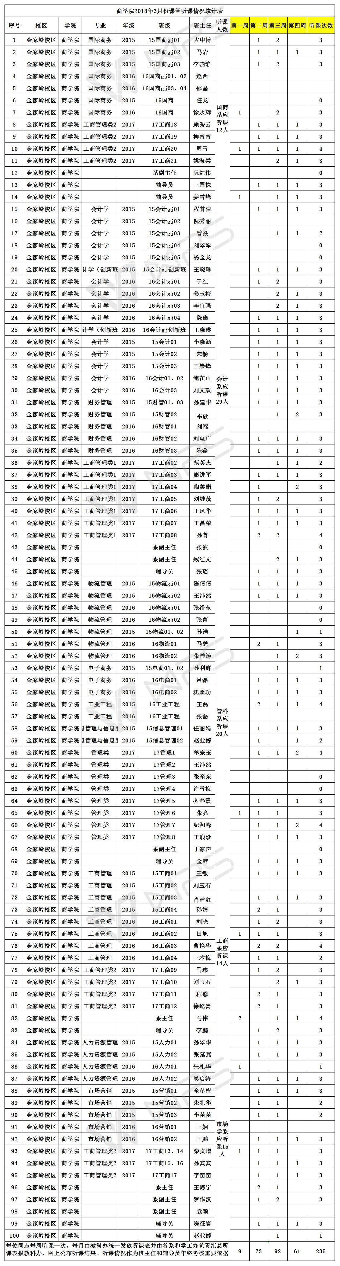 必赢76net线路官网2018年3月份课堂听课情况统计表