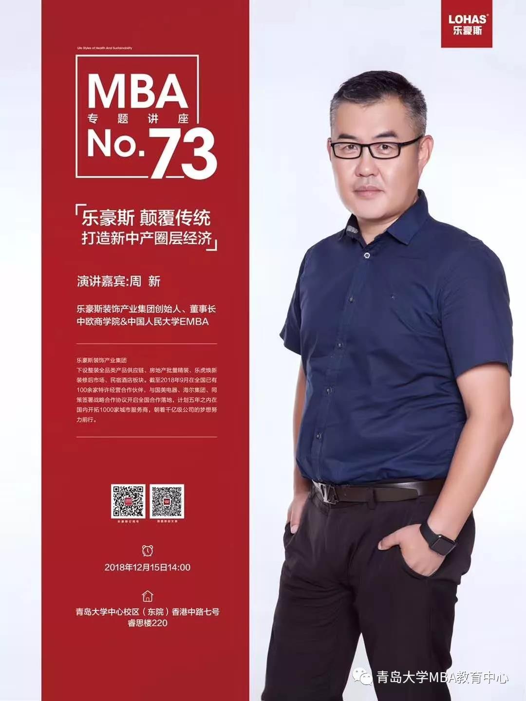 2018年12月15日14:00,在必赢76net线路官网东院睿思楼,乐豪斯装饰产业集团创始人、董事长周新,为2018级MBA学员讲述了《颠覆传统 打造新中产圈层经济》专题讲座。
