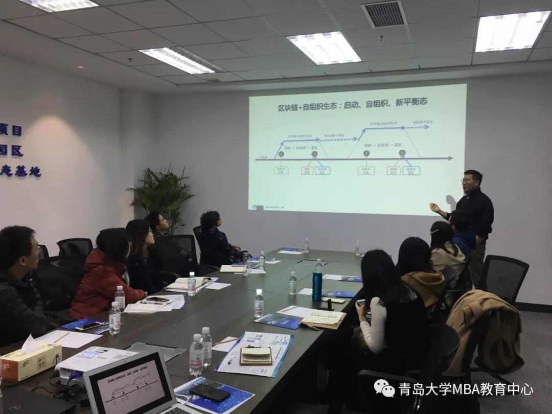 2018年 12月1日上午9:00,2018年 12月1日上午9:00,必赢76net线路官网MBA学员到青岛链湾研究院参观学习。一开始,青岛链湾研究院闫昶德执行院长详细介绍了链湾成立的背景、发展历程和未来方向。他表示,青岛链湾以自我创新为动力,以区块链技术应用服务为导向,以“政府引导、市场推进、企业化运作”为原则,全面建设以“一楼、一中心、一院、五大平台、十大应用场景”为核心的区块链产业生态服务基地——“中国链湾”。